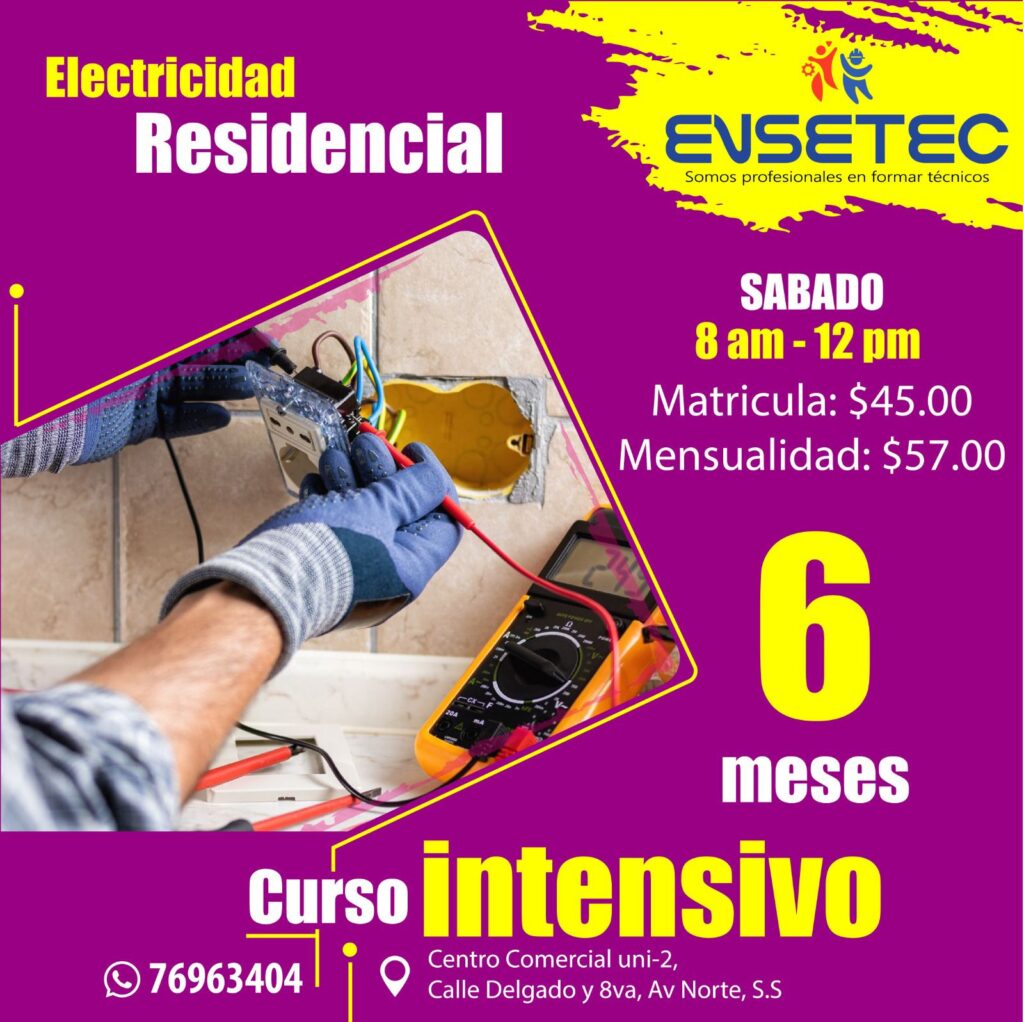 ELECTRICIDAD RESIDENCIAL INTENSIVO MATRICULA $45 MENSUALIDAD $57